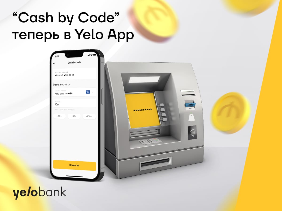 Можно так же отправлять деньги людям без карты, выбирая в приложении опцию «Отправить другу» в меню"Cash by Code". В это время первые 5 цифр десятизначного кода будут показаны в приложении, а следующие 5 цифр будут отправлены на указанный номер по SMS. Вы можете отправить первую часть кода любым способом. Получатель, в свою очередь, сможет последовательно вводить код в банкоматах Yelo и снимать средства.