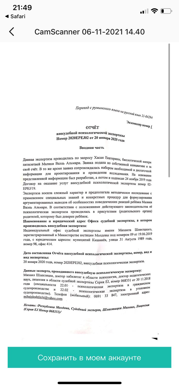 (Отчет внесудебной психологической экспертизы)