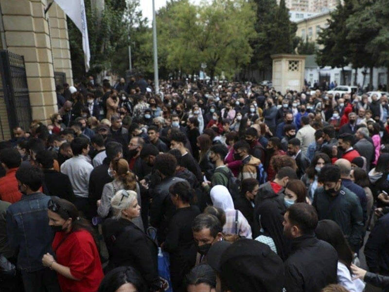 На представленных Oxu.Az фото запечатлены очереди, образовавшиеся на входе в Азербайджанский государственный университет культуры и искусств, Азербайджанский государственный университет нефти и промышленности, а также в Бакинский государственный университет.